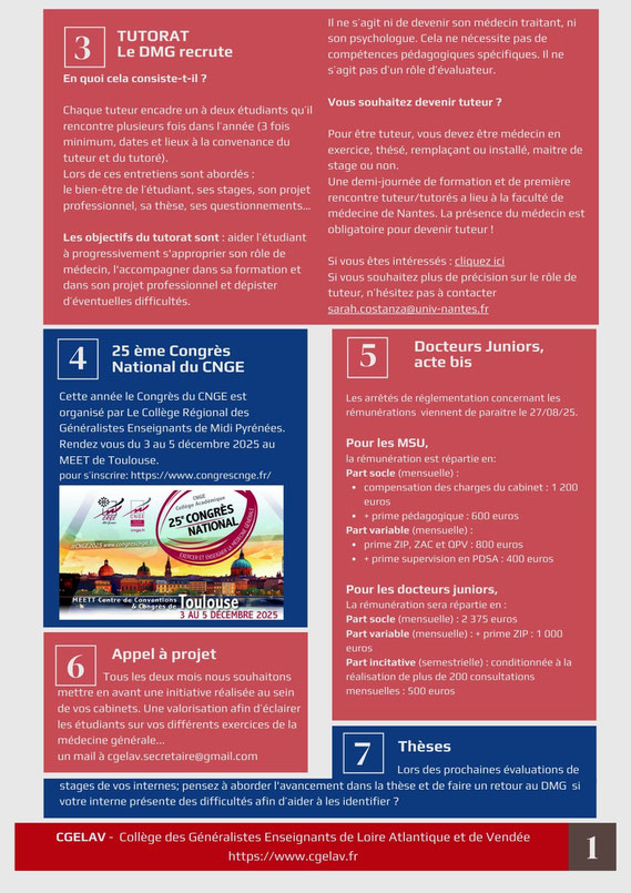 Le CGELAV est l'association représentative de l'ensemble des PAMSU (Praticiens Agréés Maîtres de Stage des Universités).